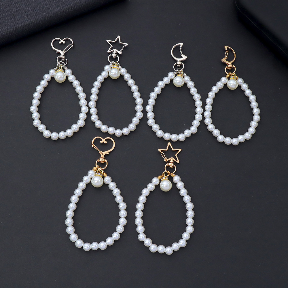 DIY真珠ビーズ手提げチェーン五角星愛月形キーホルダー