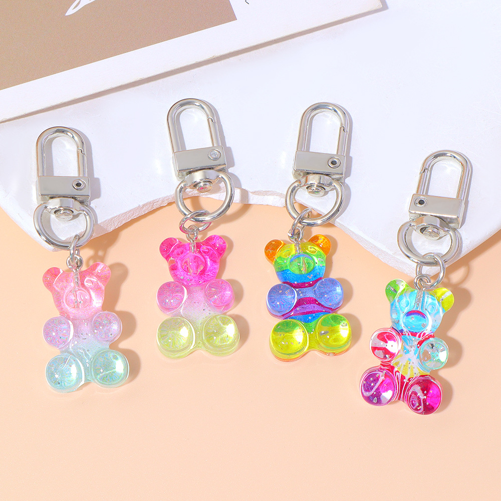 漫画の透明なキャンディー色の熊のキーホルダー樹脂の小動物のペンダントの学生のかばんのペンダントのイヤホンの装飾