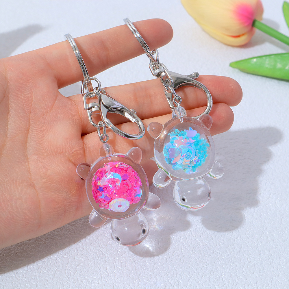 INS風透明アクリル亀キーホルダースパンコールぬいぐるみペンダント女子バッグストラップ