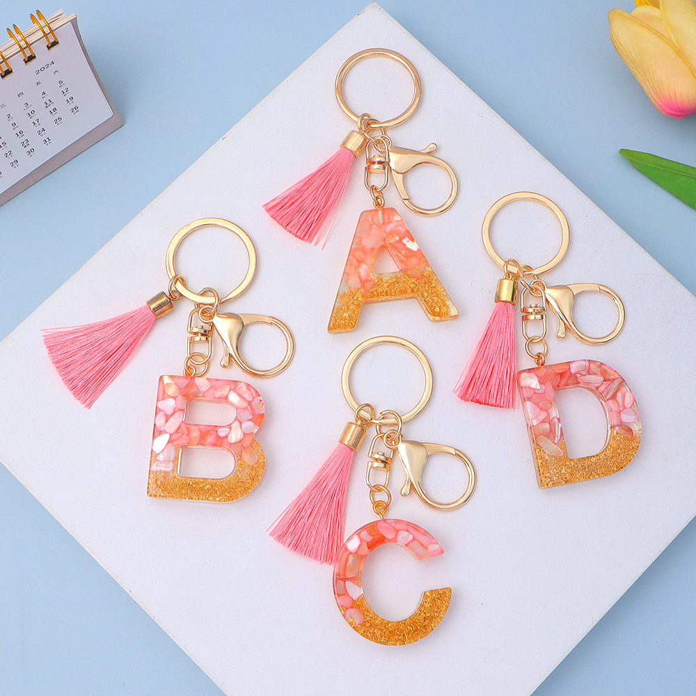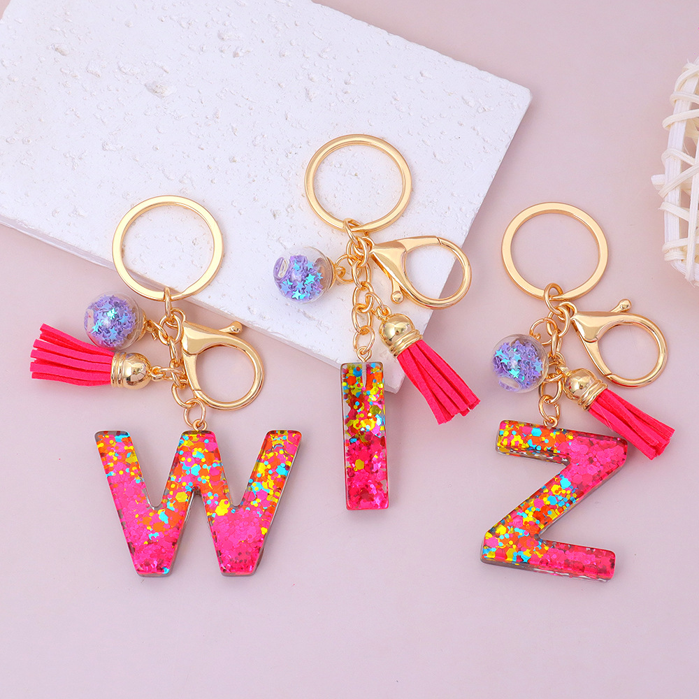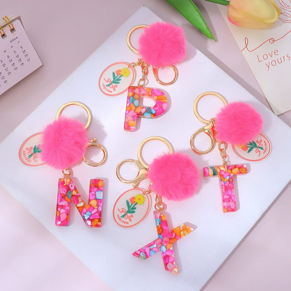 ピンクの毛玉滴ゴムのアルファベットのキーホルダーA-Z26のアルファベットの名前のペンダント