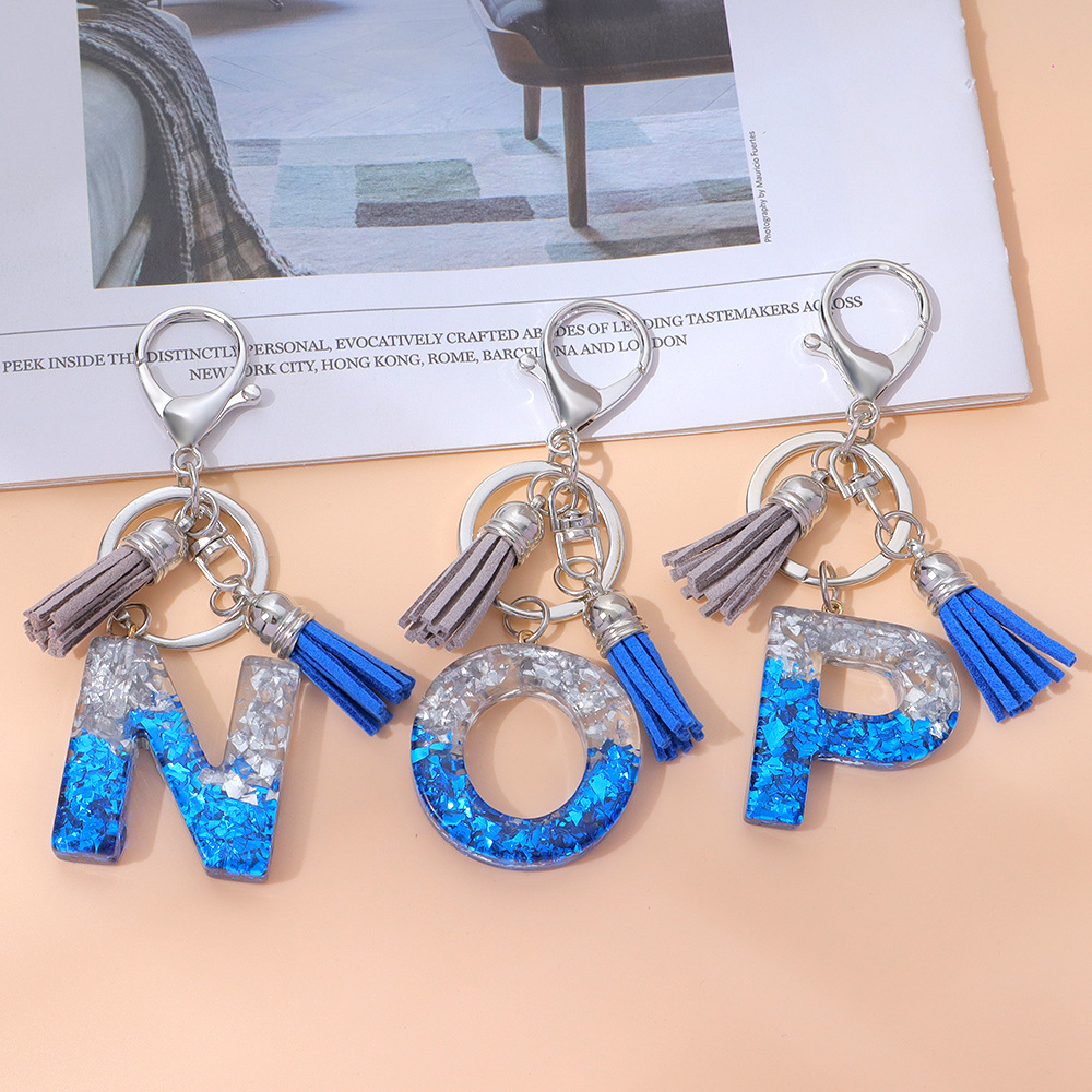 青い滴のゴムのアルファベットのペンダントのキーホルダーとフリンジの男女の同じタイプのカバンのペンダントのパーティーのプレゼントは国境を越えてよく売れています。