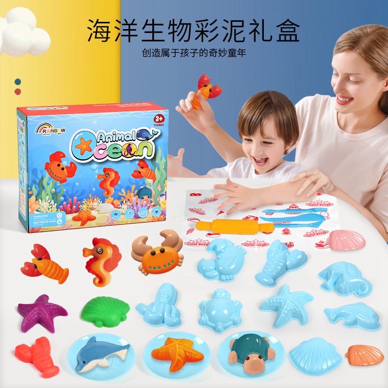 新型子供海洋生物カラー泥金型セット動物玩具手作り粘土室内ままごと玩具