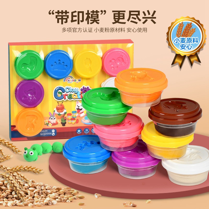 400グラムの大きいコップは彩色の泥を詰めて8色の瓶の缶を詰めて小麦粉の手のゴムの泥の鋳型の園のおもちゃを詰めます。