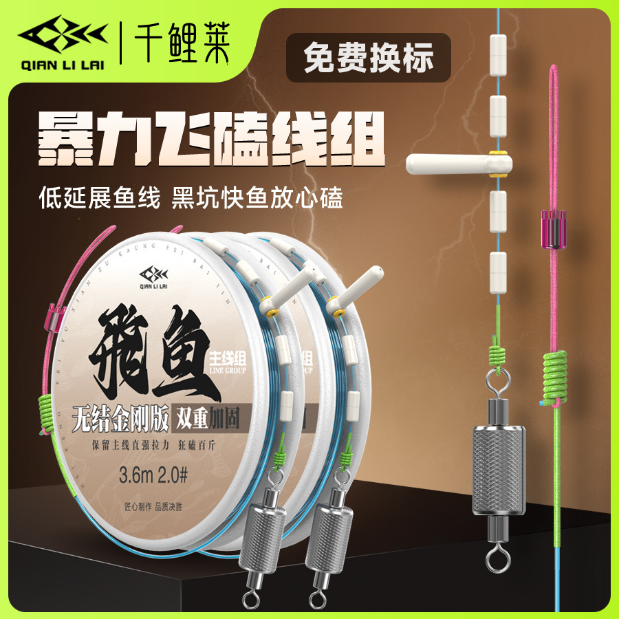 Qianlikailai ブラックピット フライフィッシュラインセット メインライン釣り糸 結束済み完成品 強化コンプリートセット 完成品競技用ラインセット スチールキャノン
