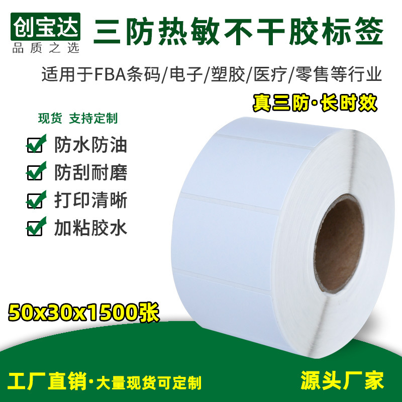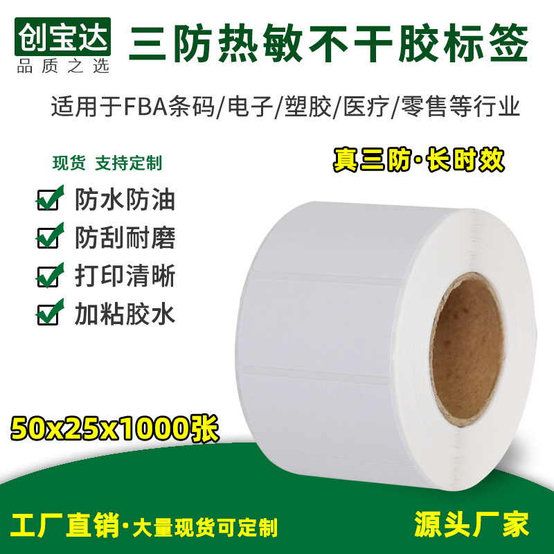 三防感熱ラベル紙40*20*2000三防不乾性ラベルfbaバーコードアマゾン印刷紙