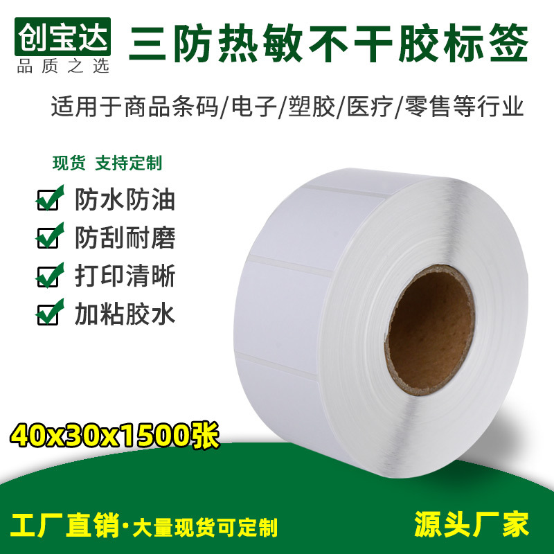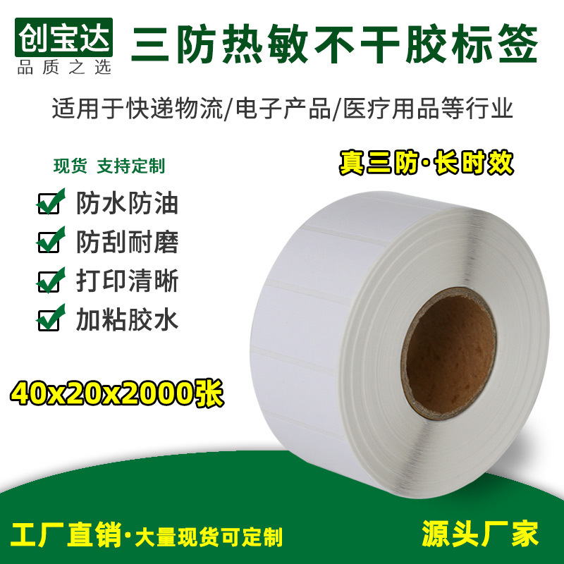 三防感熱ラベル紙40*20*2000三防不乾性ラベルfbaバーコードアマゾン印刷紙