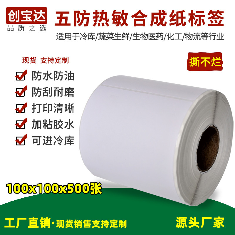 五防感熱合成紙100x100x500 pp感熱ラベル紙耐低温ラベル防水引き裂かれない