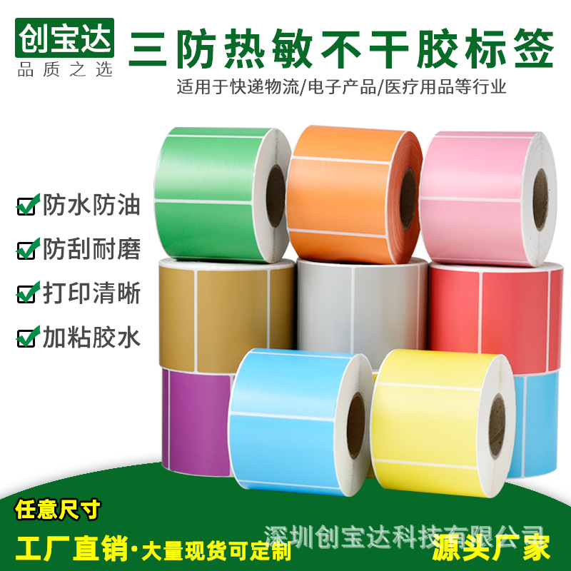 カラー三防感熱ラベル紙カラー感熱不乾性赤黄色粉緑青紫オレンジ牛皮色グレー
