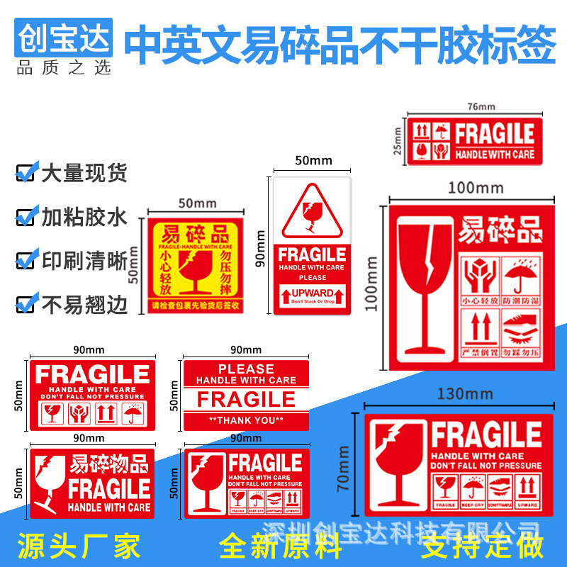 壊れやすいラベル紙警告ラベル紙警告シールは、ラベルの中の英語の壊れやすいラベルに気をつけてください