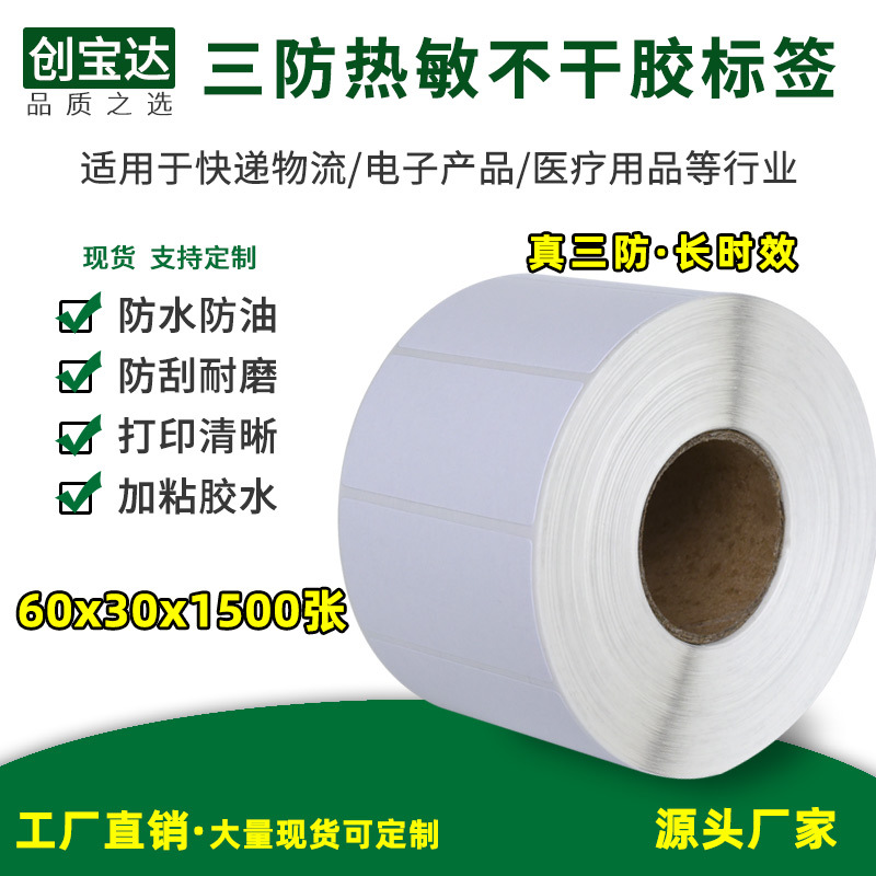 三防感熱ラベル紙60*30 * 1500pcs三防感熱ステッカー感熱紙ラベル感熱紙ラベル