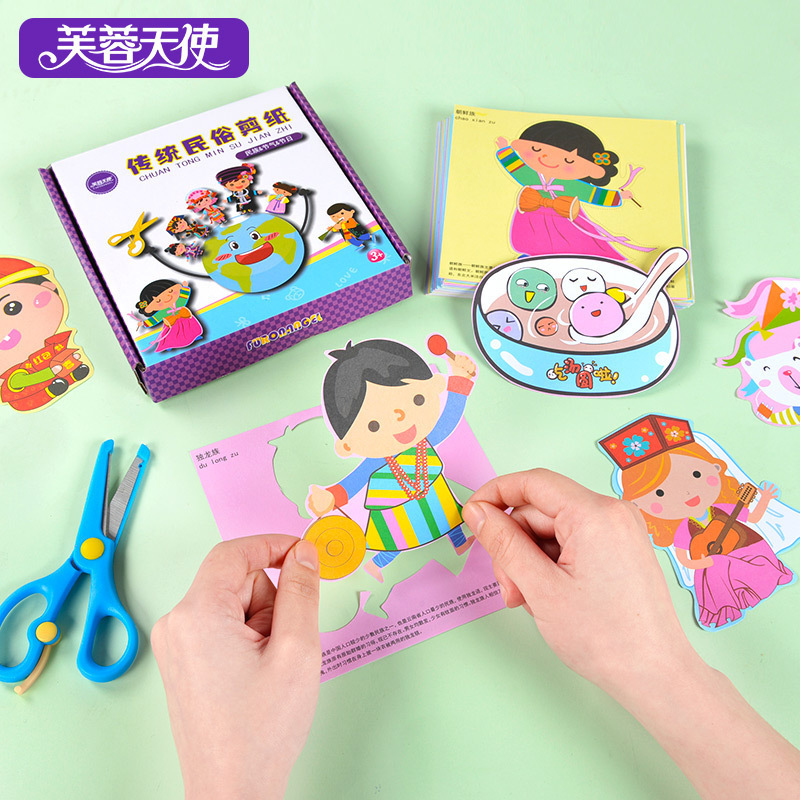 芙蓉天使子供伝統祭り切り紙フルカラー中国風幼稚園赤ちゃん新年民族手作り紙