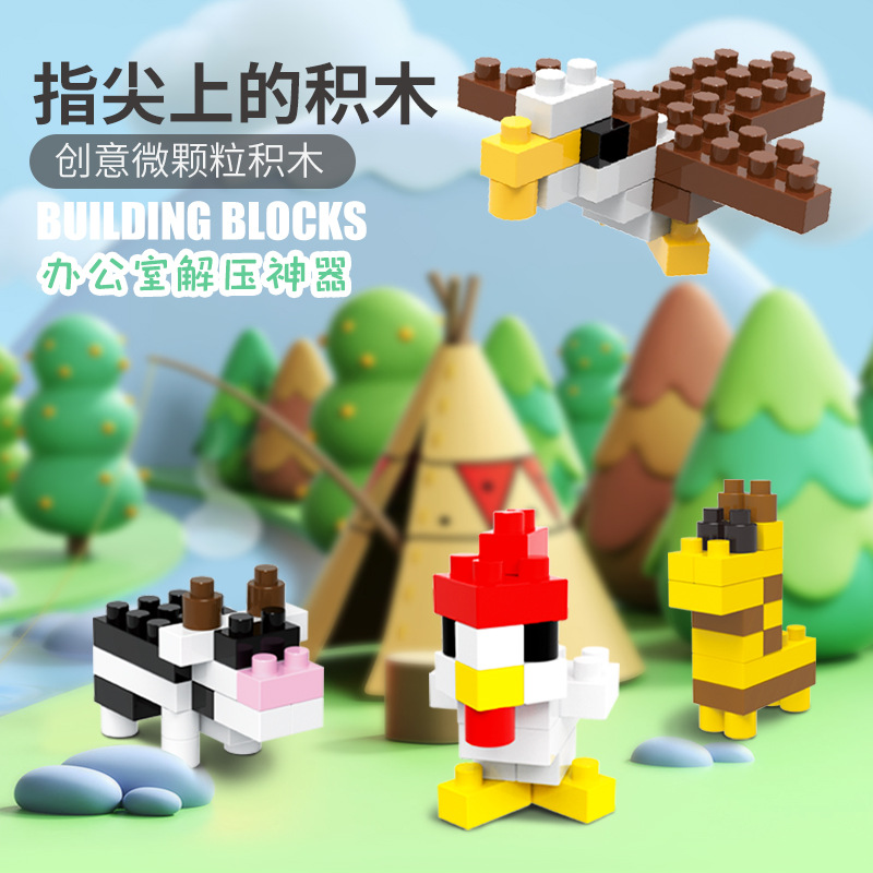 子供の12種類のミニ動物の小粒の積み木の小型の積み木の組み合わせのシリーズの早教の益智の恐竜のひよこ