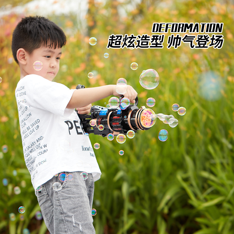 子供のガトリンの泡銃の電動の音楽の照明の泡機の5穴の大きいサイズは自動的に泡の屋外のインタラクティブを出します。