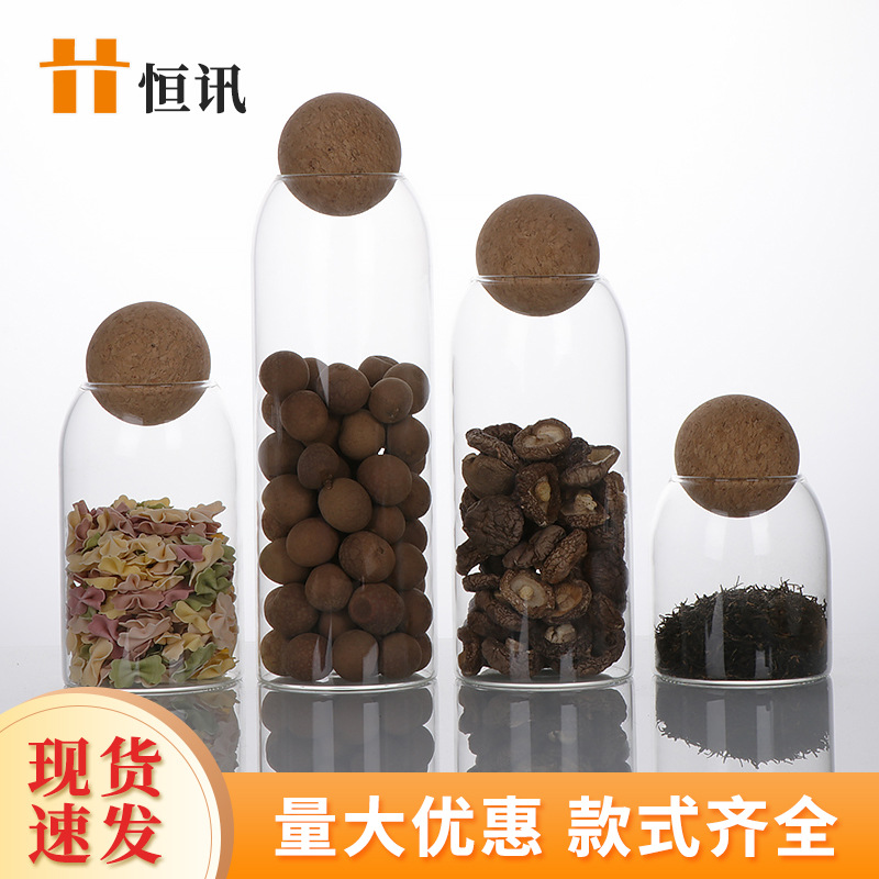卸売り創意球形コルク栓茶葉缶厚いガラス密封缶食品収納貯蔵缶はロゴを印刷できます。