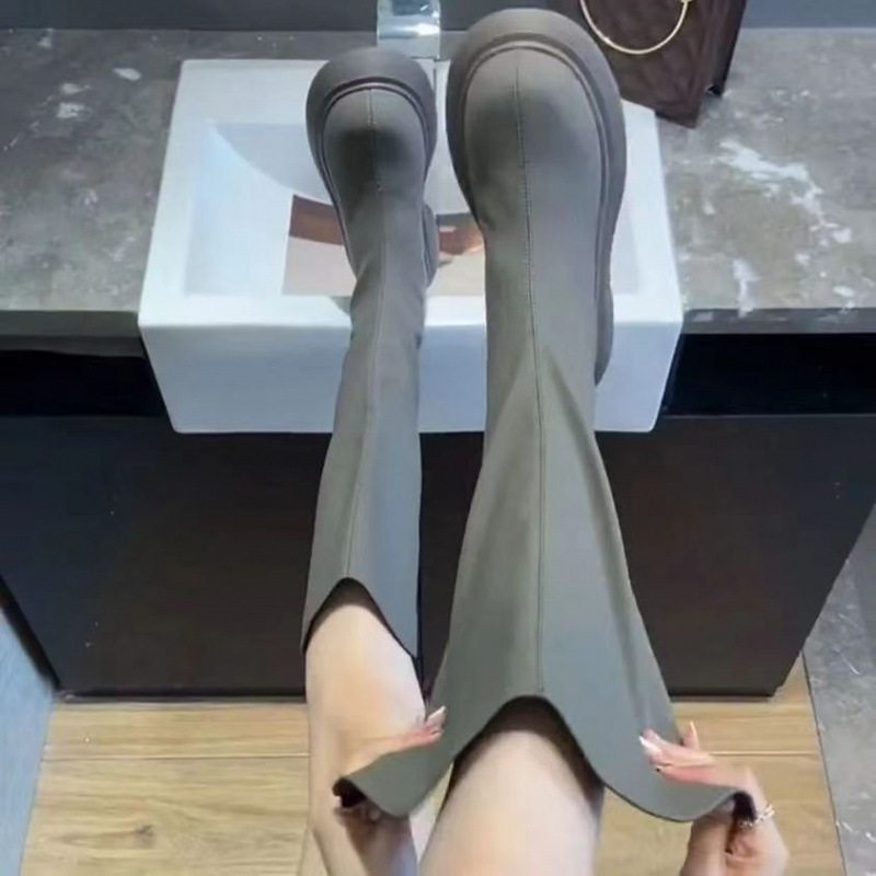 Zラウンドトゥグレーハイブーツレディース騎士ブーツ細身ブーツ2024年秋冬新作厚底膝丈ブーツ