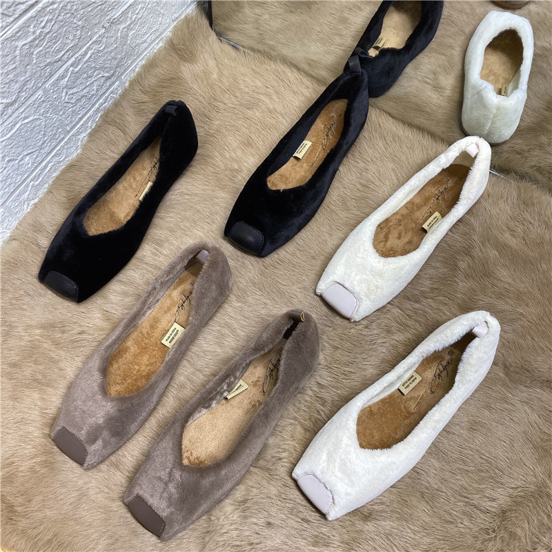ヨーロッパ駅2024秋冬の新型レトロな女性靴ベルベット保温毛羽立ち靴角頭平底ファッション靴