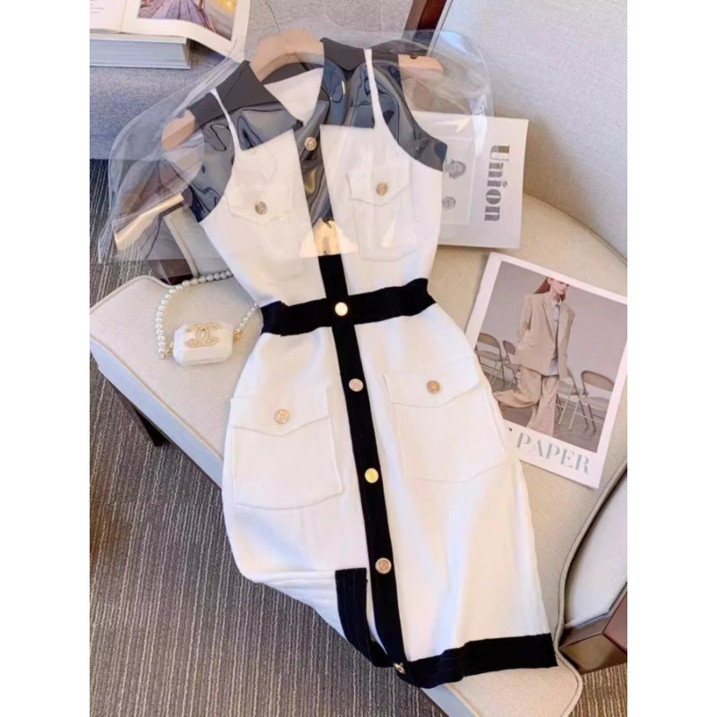 2024夏の新型polo襟ノースリーブニットワンピース女性小香風ガードル痩せa字バッグヒップスカート