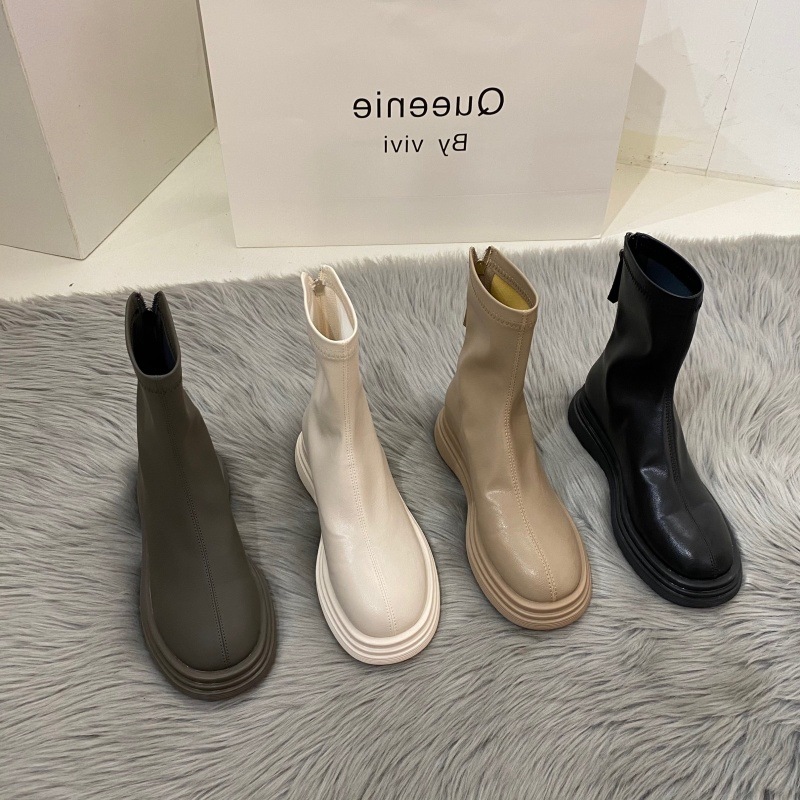 マーティンブーツの女性の丸い頭の後ろのジッパーのショートブーツ2024秋冬の新型のベルベットの厚い底の小さい体のやせているショートブーツ