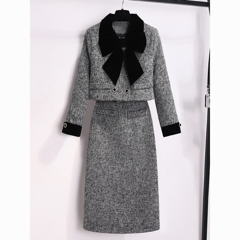 2024冬の小香風スーツスカート女性感気質名媛綿入り厚手コートスカート2点セット