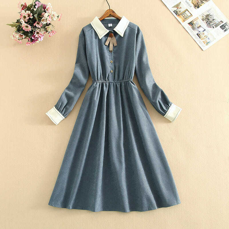 森系アンドロメダ学生ワンピース女装春秋2024年新作秋冬フレンチスカート長袖ロングスカート