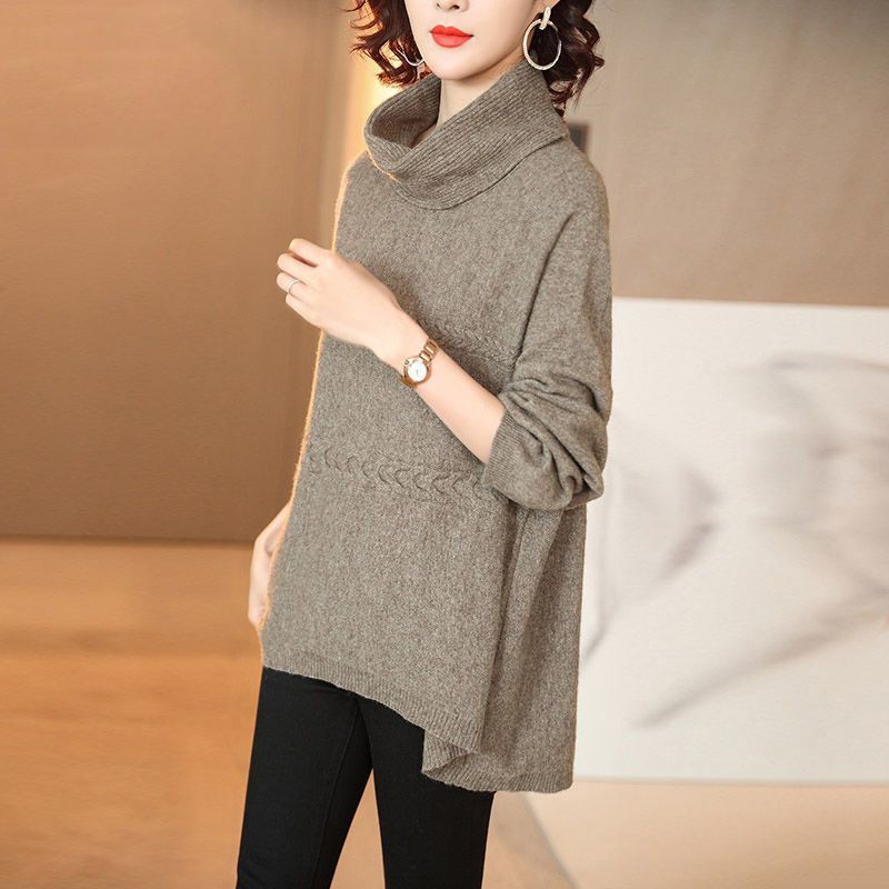 セーターの女性2024欧米の純色の頭の中の長いタイプの春の新型のゆったりしている高襟はやせているニットの底のシャツを現します。