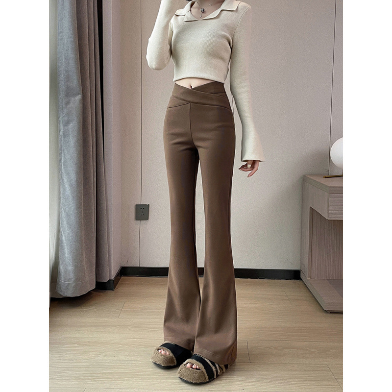 毛の小さいラッパのズボンの女性の秋冬の新型のカシミヤの厚い交差の腰のデザイン感はやせているカジュアルな馬蹄のズボンを現します。