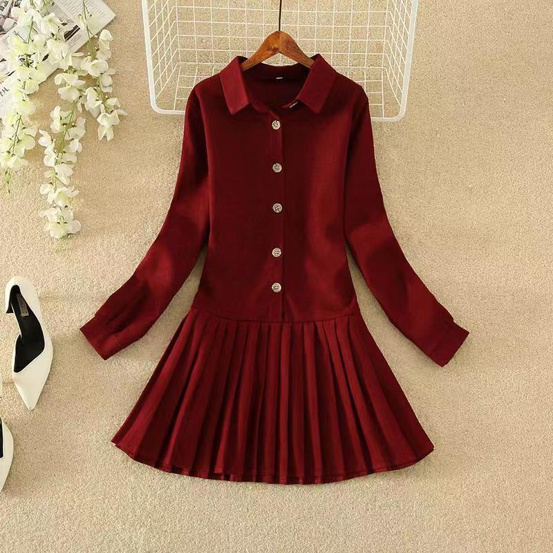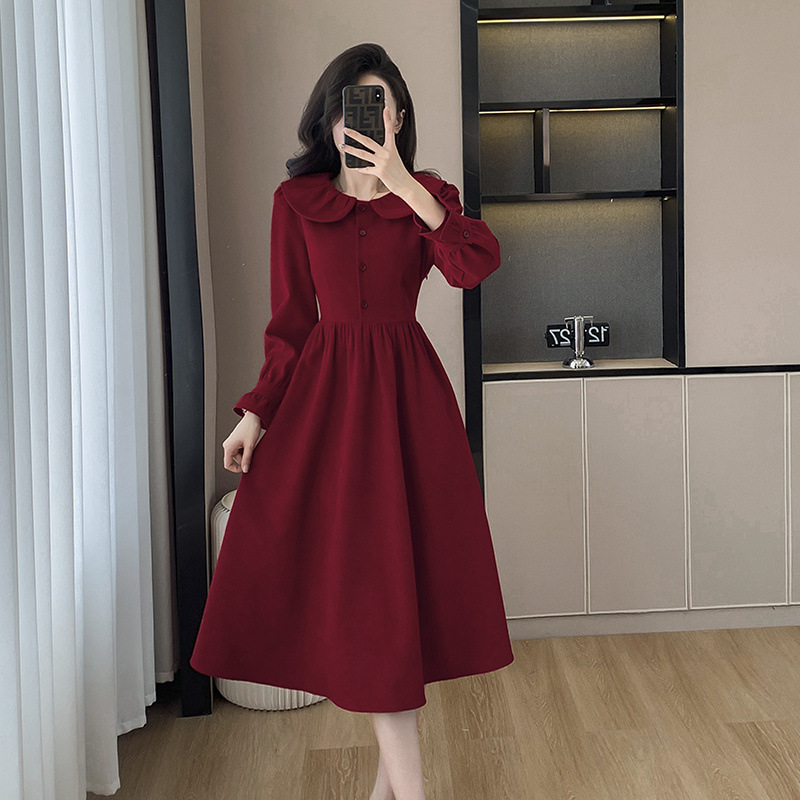 小柄なワンピース長袖2024秋冬の新型コーデュロイのワンピース