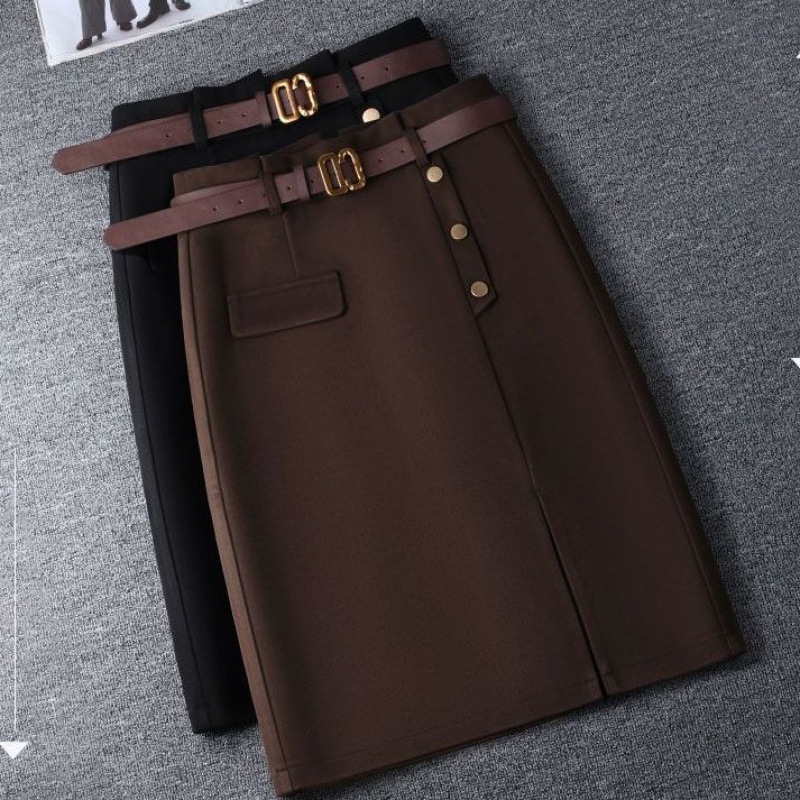 毛の半身のスカートの長いスカートの女性の2024の新型の秋冬の新型のラシャのハイウエストの百合はお尻のa字を包んでお尻のスカートを包みます。