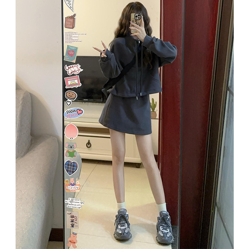 2024秋冬のスポーツウェアの女性の香港風のファッション的な塩のひものガードルのスカートの年齢を減らしますカジュアルな2つのセット