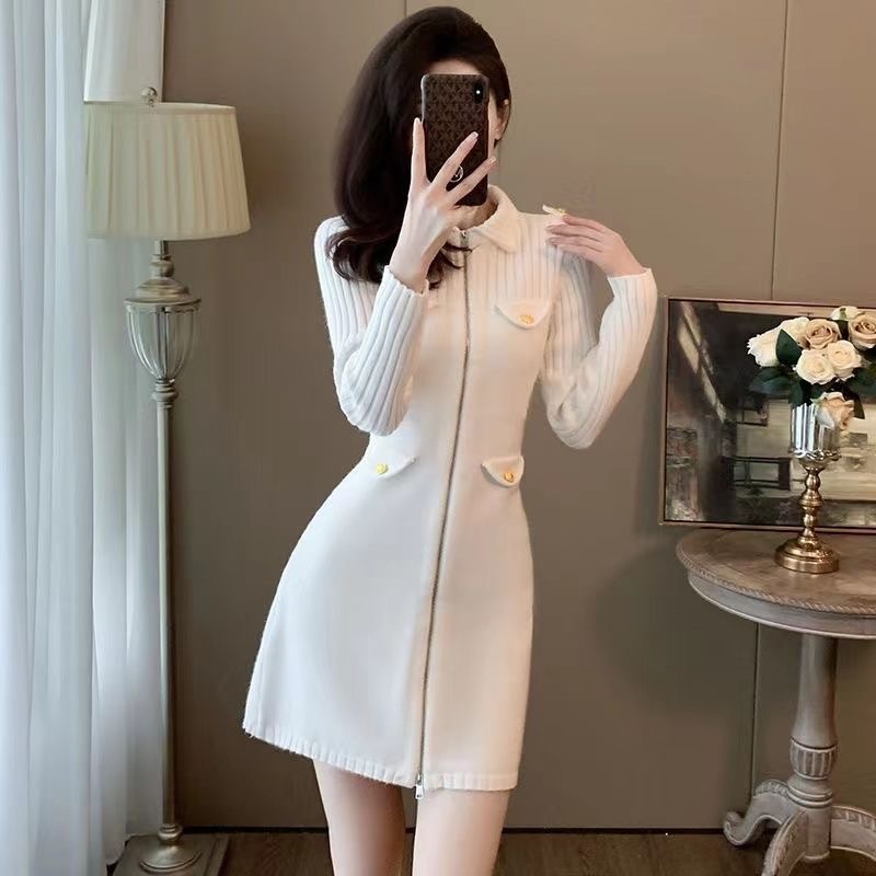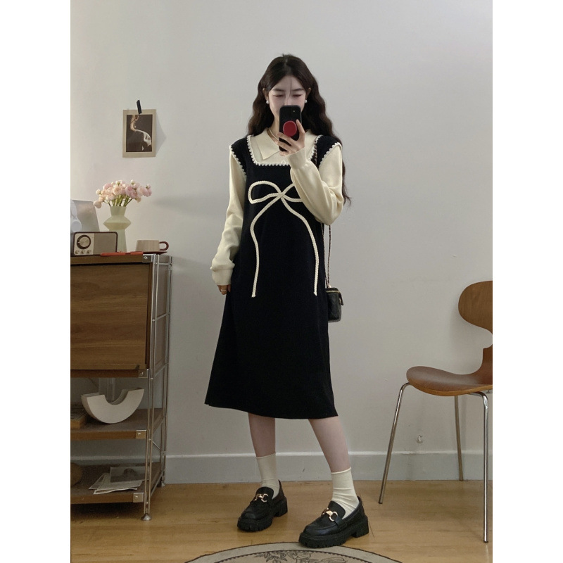 ペンダント感のあるフランスの長袖のニットのワンピースの女性の秋の服の2024年の新型の感の中は底の長いスカートを掛けます。