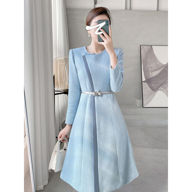 春秋モデル感高冷お姉さん風気質ブルーA字小香風ワンピース女性名媛通勤スカート