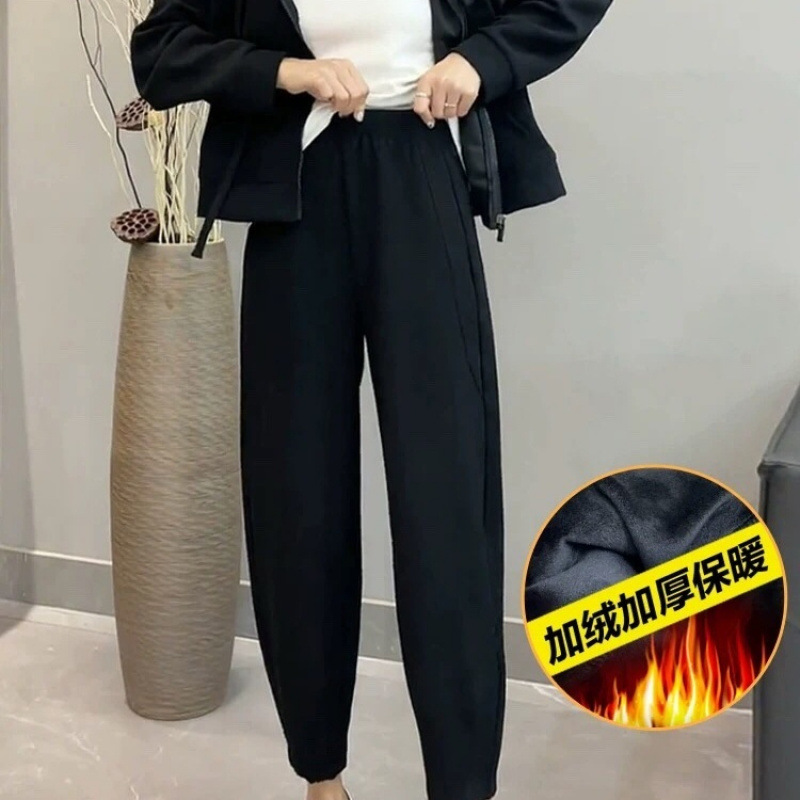 ベルベット保温九分ハーレムパンツ女秋冬新モデル痩せカジュアル大根ゆるいストレート梨形爺さんズボン潮