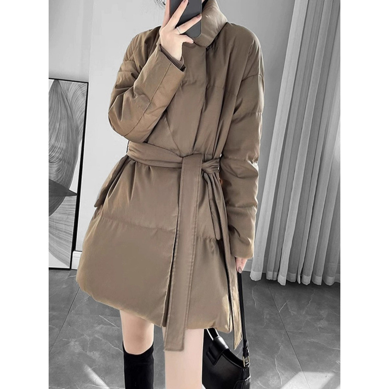 香港風軽豪華カーキ色2024冬の新モデルの中で、保温パン服の綿服の女性コートの綿入れを厚くする