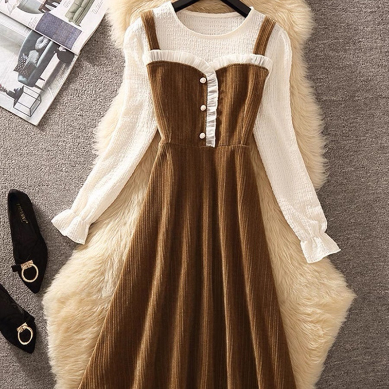 スタイルのワンピースを見せます。秋冬の女性は優しくて小さいです。