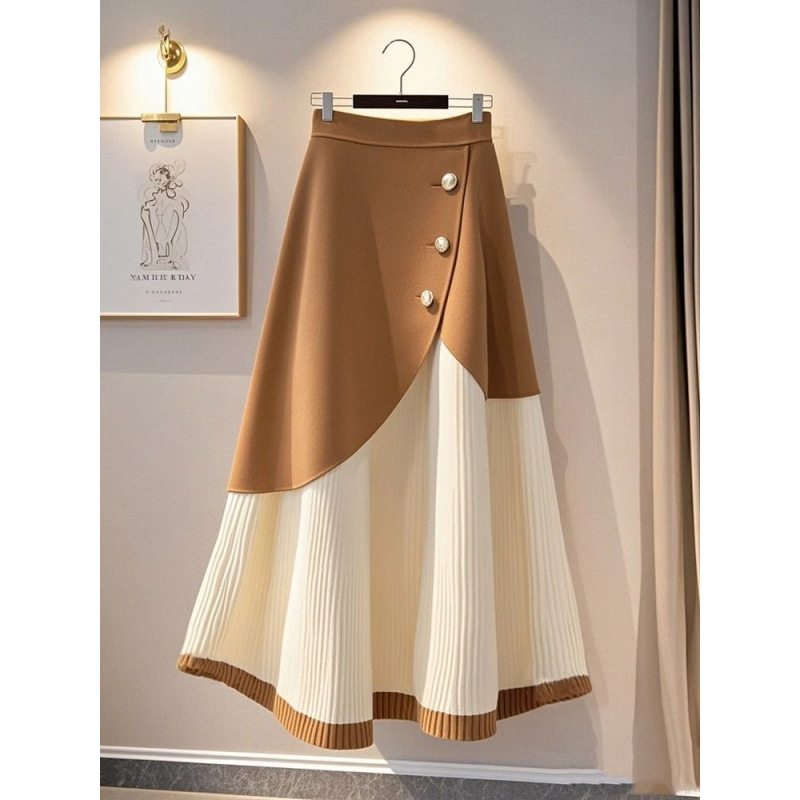 百タックの半身のスカートの女性の春秋2024の新型の優しい風の韓国版の高い腰は緩くてやせている純色の百合の中で長いタイプがあります。