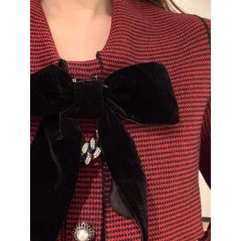 コーデュロイスカート2024秋冬新作ワンピース女性フランス風小香風感赤色着痩せ2点セット