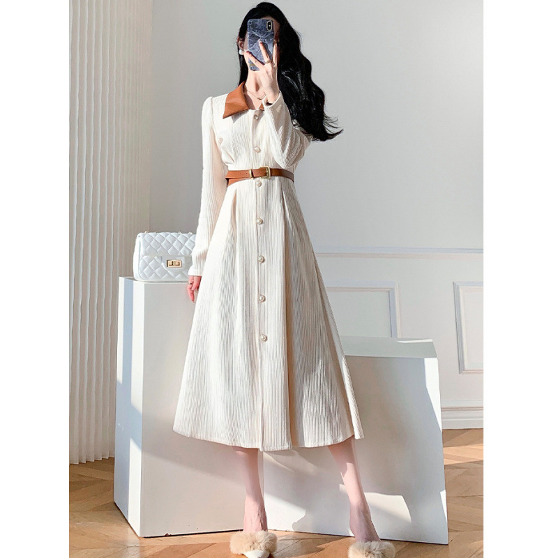 感コーデュロイワンピース女性秋冬洋気減齢腰が痩せている気質にコートの中に長いスカートがついている