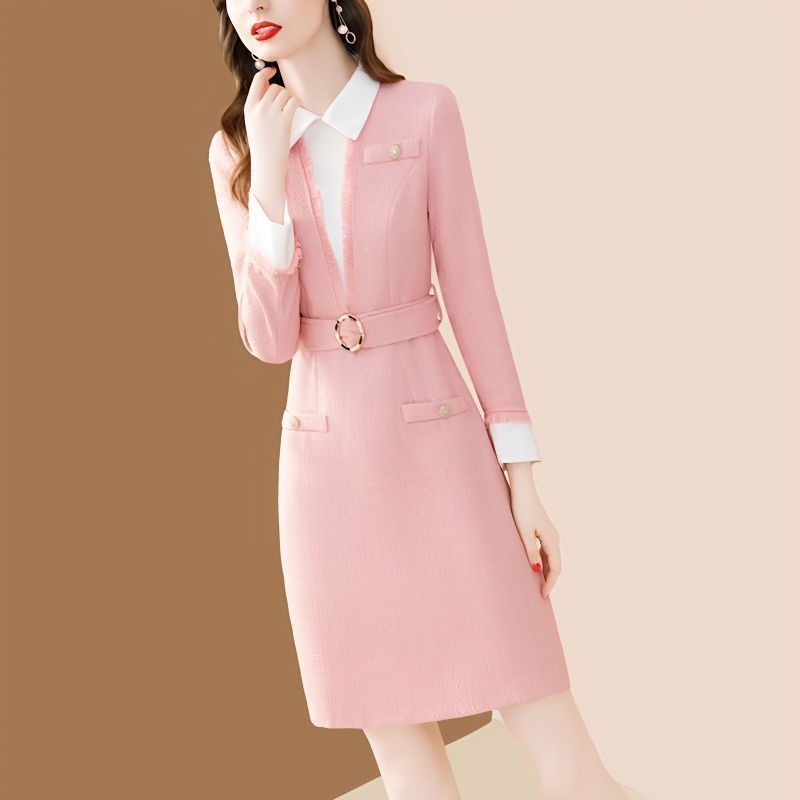 POLO襟偽二枚のワンピース女性2024秋冬の新商品の香風気質の中の長いa字のスカート