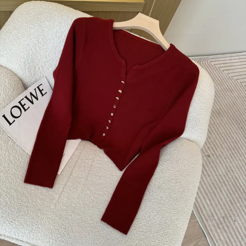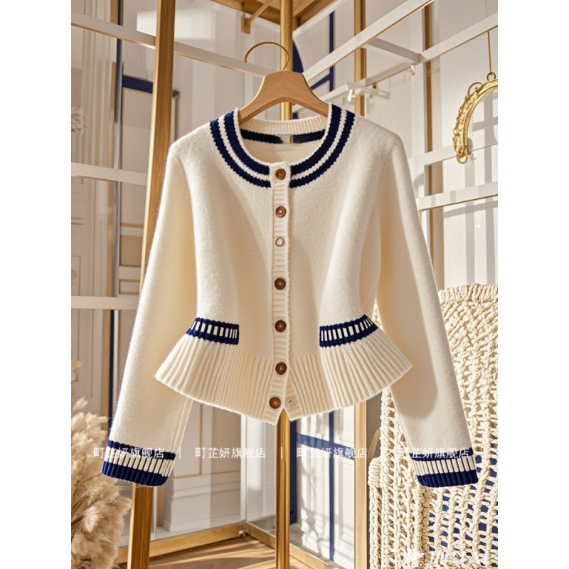 レトロなシックな金属ボタンの長袖のニットの女性の秋冬の新型の修身のセーターのカーディガンは底のセーターの上着を打ちます。