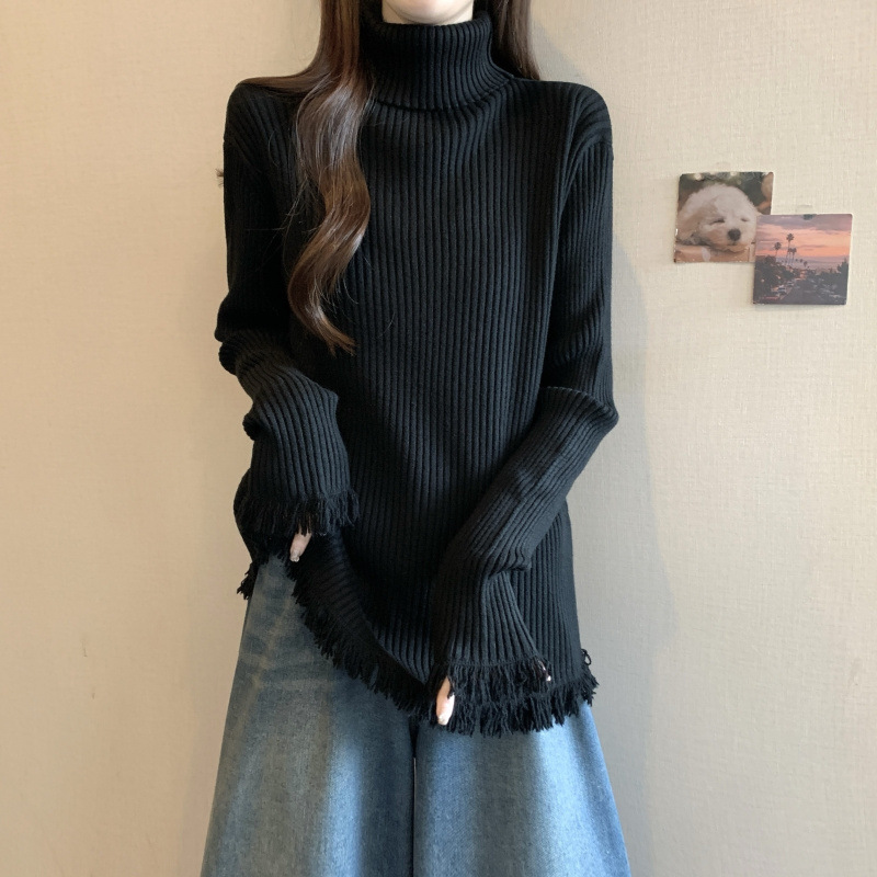 フランスの半高襟のニットの底のシャツの上着の女性の秋冬の大きいサイズの太っている妹はやせていることができます。