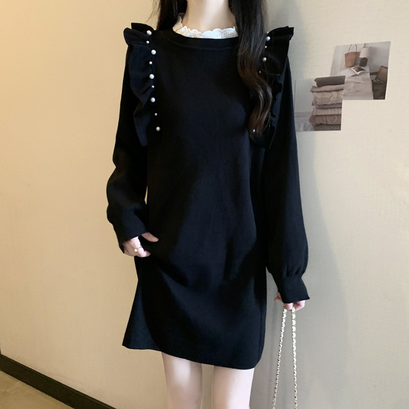 素敵で甘いセーターのワンピース女性秋冬ストレート太った妹が痩せて肉を隠しているフレンチニットのワンピース