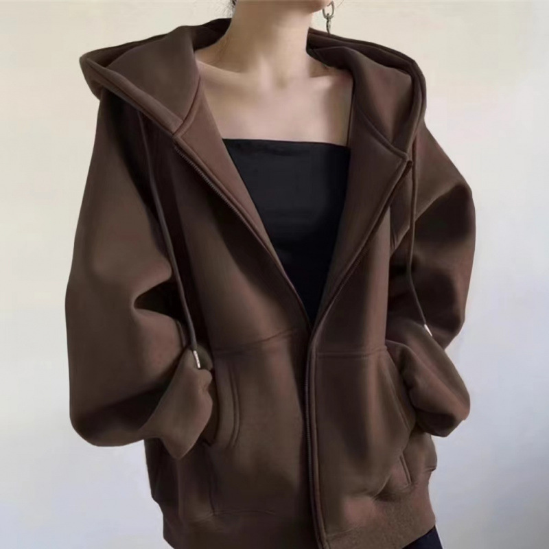 フード付き茶色のカーディガンのコートの女性春秋の新しい薄いモデルのゆるいoversize怠惰な風のジッパーの上着