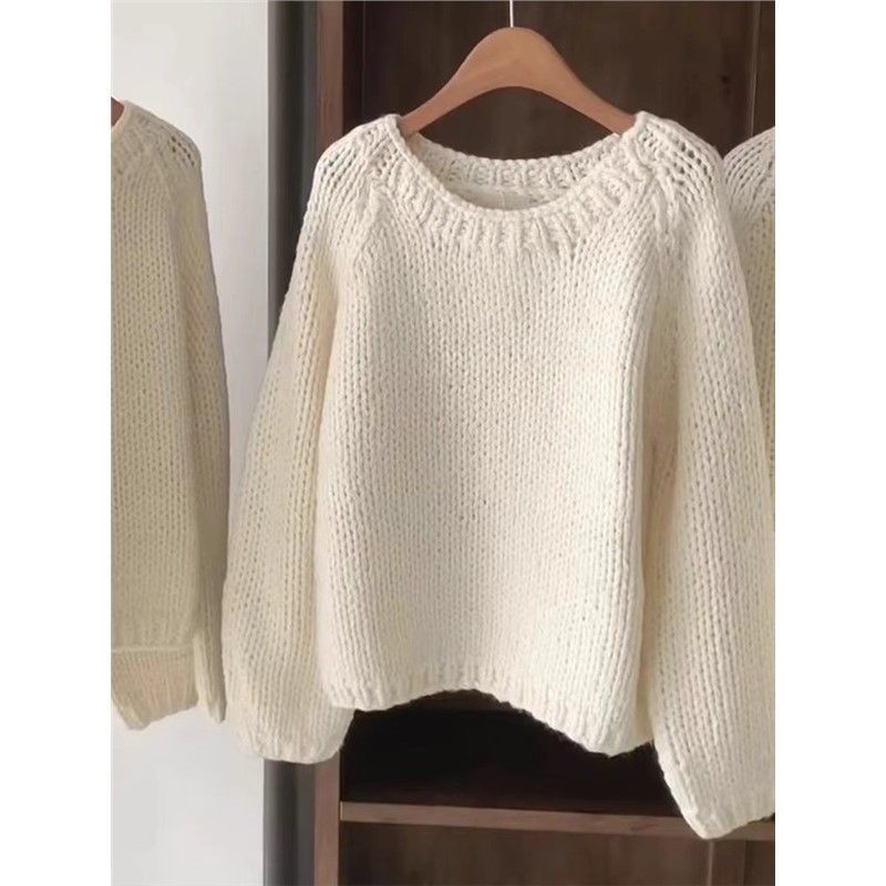 秋冬の濮院の爆発金は韓国系の怠惰な風の乳の白い太い線のニットのセーターの女性の丸首のプルオーバーの上着です。