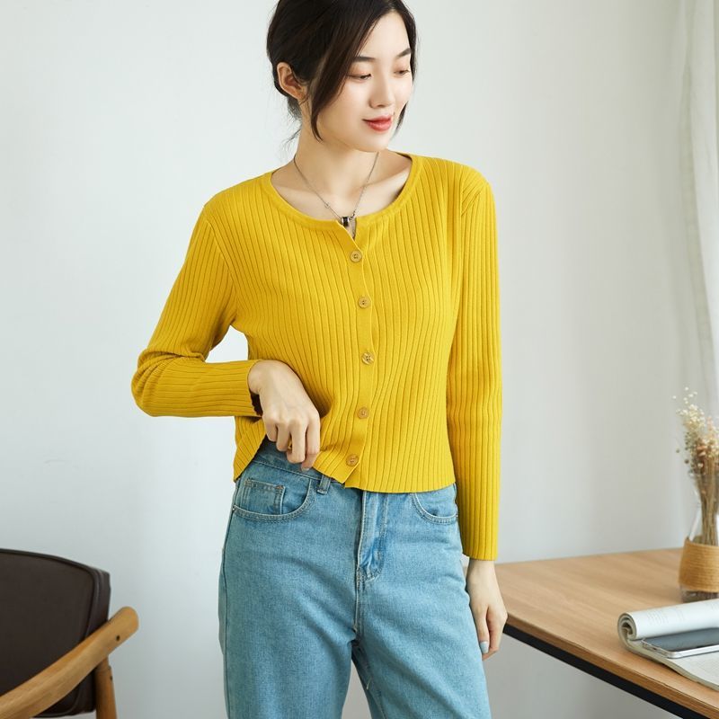 秋冬の底のPoloニットのカーディガンの女性の襟をめくるファッションのカジュアルなショートコートのセーターの上着の新型の秋