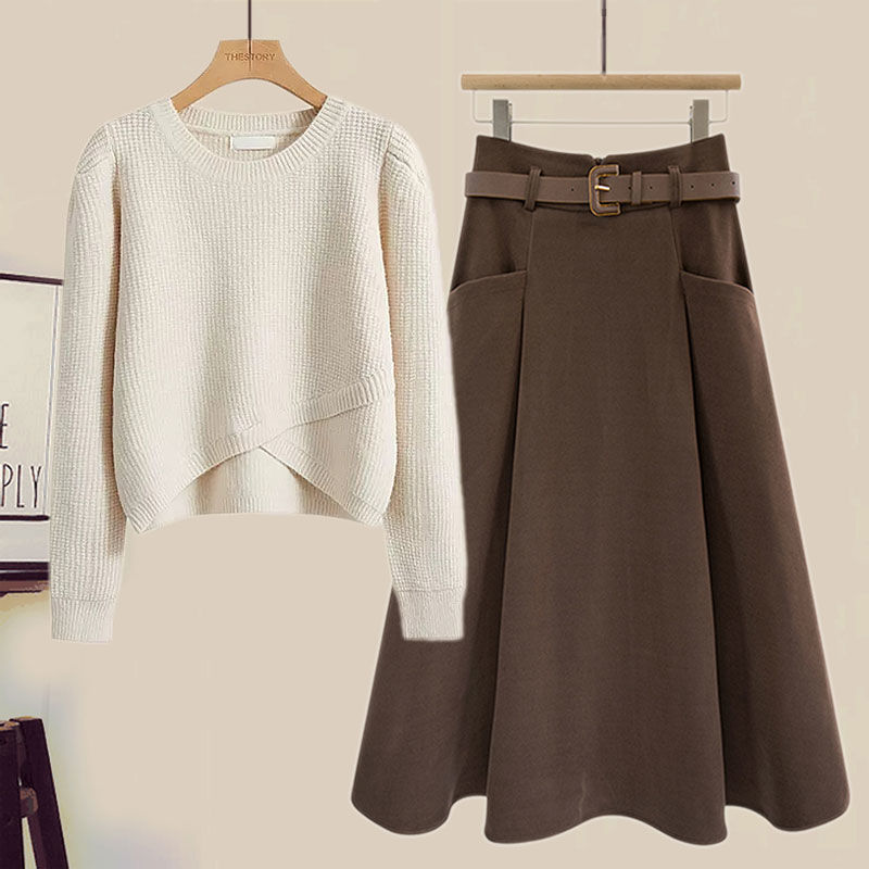 秋冬セットの女性2024の新しい洋気が痩せて見えるニットセーターの半身のスカート感の2つのセット