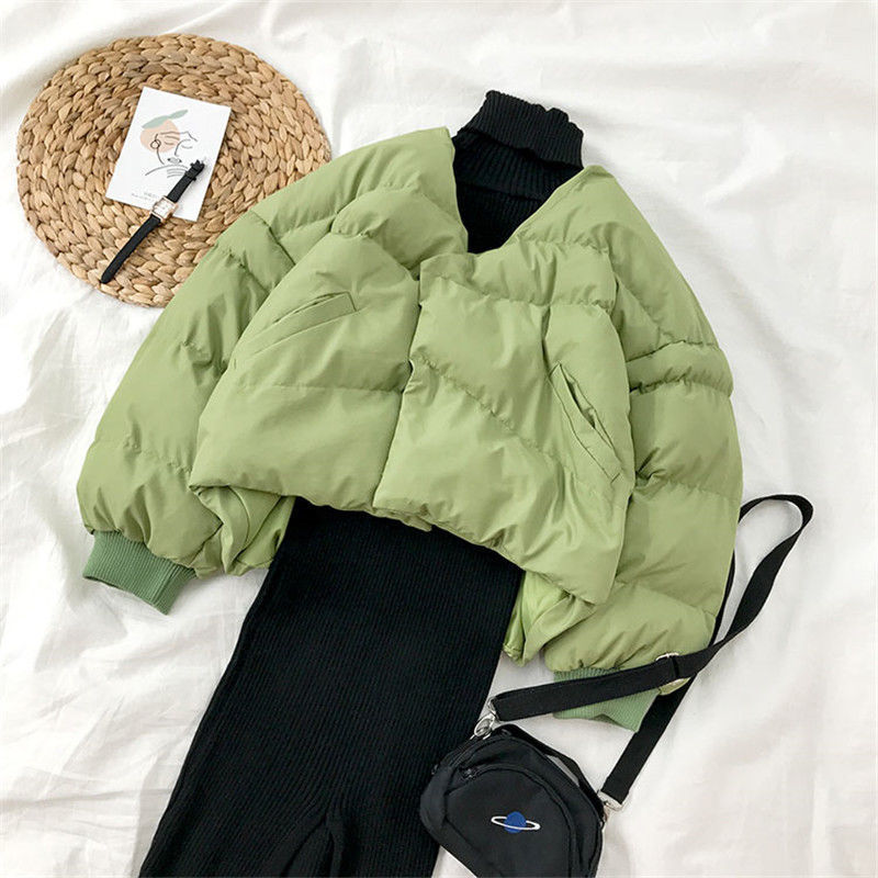 冬のコートの女性2024デザイン感立襟純色ダウン綿服綿服学生は綿入れのパン服の潮を厚くする