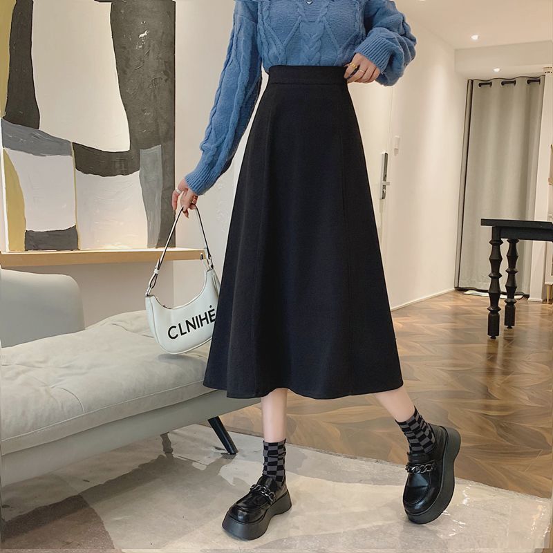 毛の暖かいスカートの半身のスカートの女性の2024秋冬の新型の韓系は黒色の中の長い中のラシャのa字のスカートの女性を着ます。