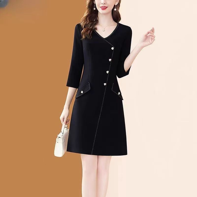 軽豪華感ファッション名媛ワンピース女性2024春の新しい気質が腰を収めて痩せたデザイン感のあるスカート