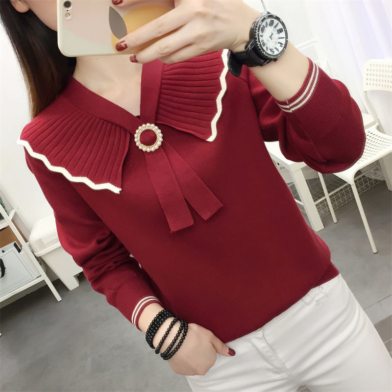 セーターの秋冬のニットは厚い底のシャツの婦人服の新型の上着の洋風の修身の中で子供の襟の潮を掛けます。