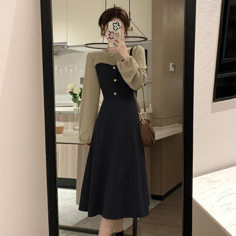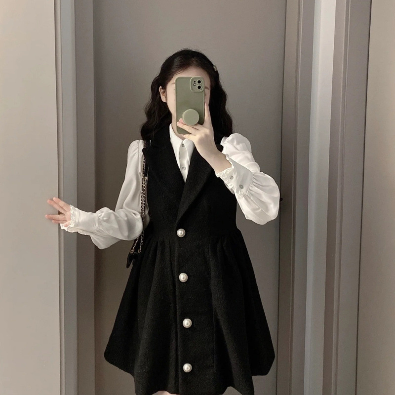 日系純欲風秋冬フレンチシャツベストワンピース香風が腰を収めて痩せて見える長袖上着2点セットのファッション